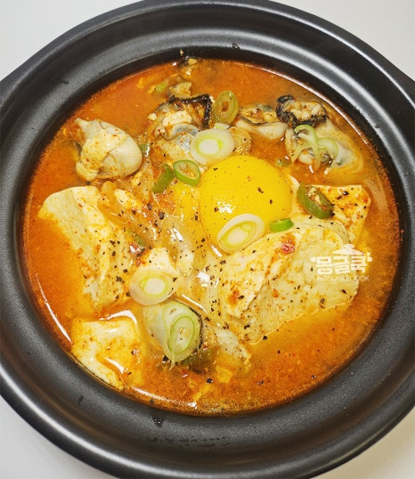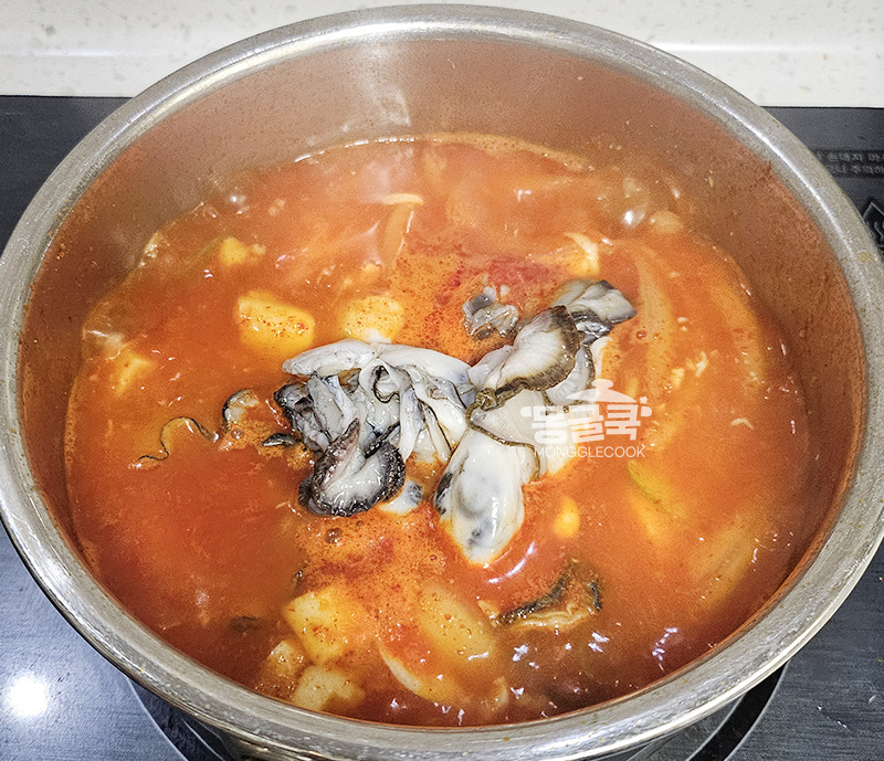 마지막 단계에서 씻어둔 굴을 넣어주세요.