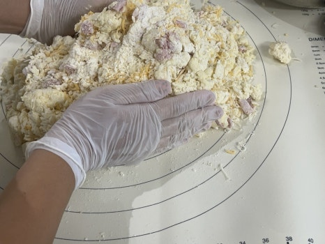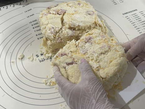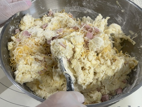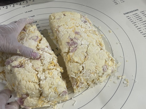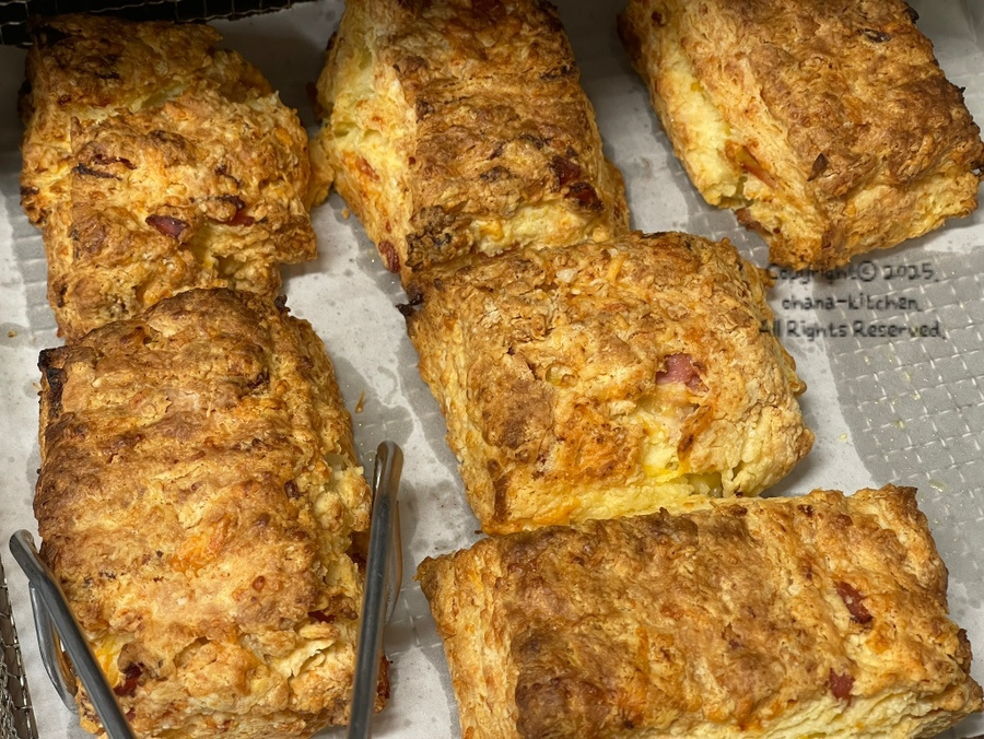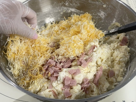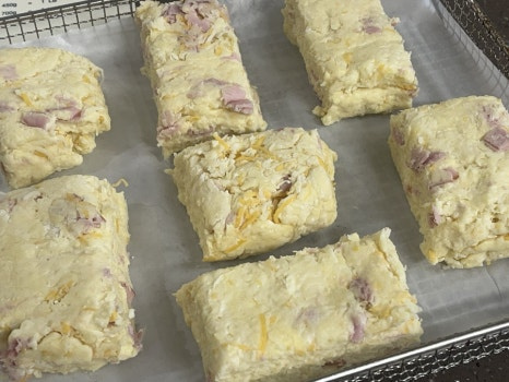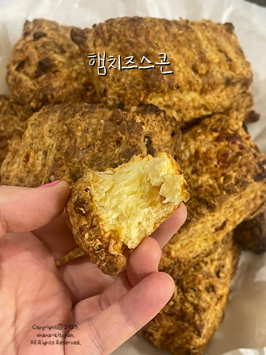 오늘은 잠봉햄과 멕시칸슈레드 치즈를 듬뿍 넣은 햄치즈 스콘을 구워봤어요.