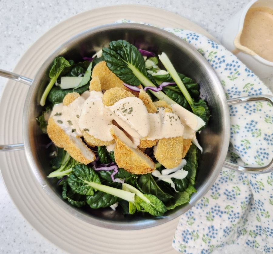 ✔️갓 구워 뜨거운 너겟을 채소 위에 바로 올리면 채소의 아삭함이 떨어지니 한김 식힌 뒤 올려 주세요.