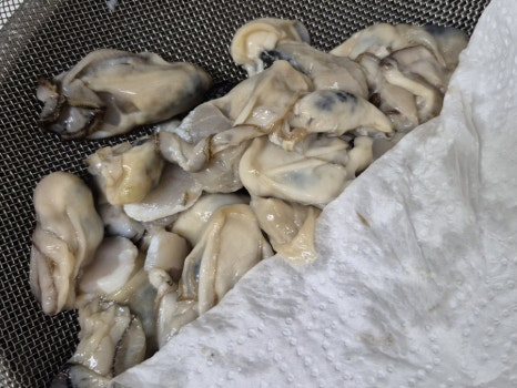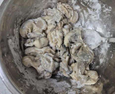 ✔️굴에 전분을 입혀 구우면 모양이 유지되고 쫀득해지면서 양념이 더 잘 배요.