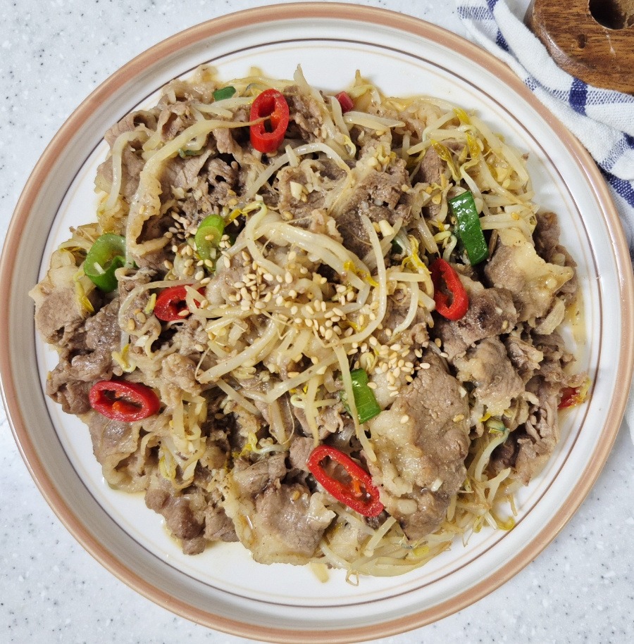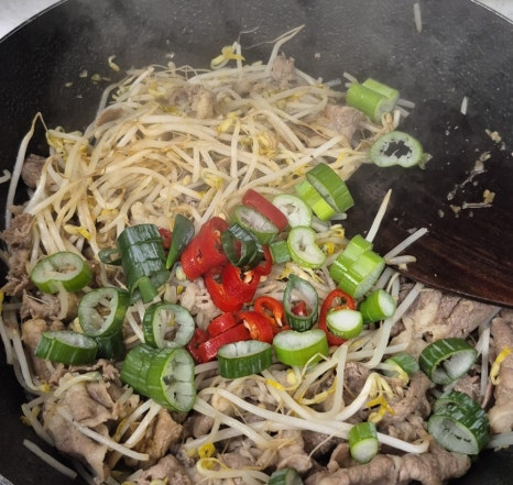 매일 먹어도 좋은 고기반찬, 이번에는 우삼겹과 숙주 듬뿍 넣어 볶음요리를 만들었어요.