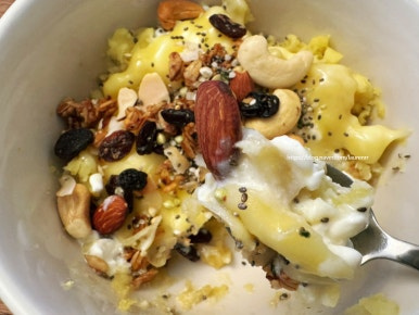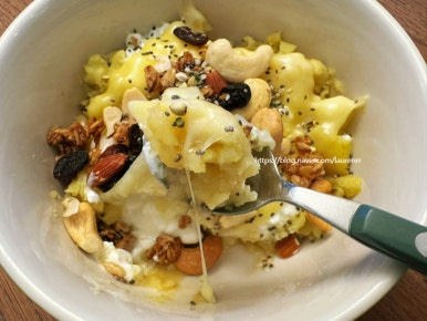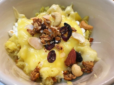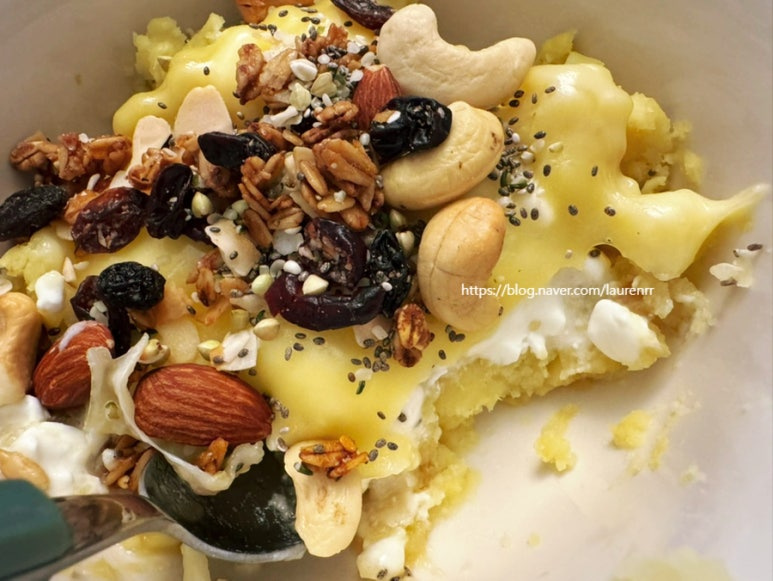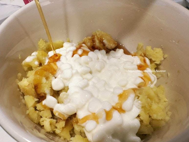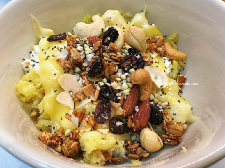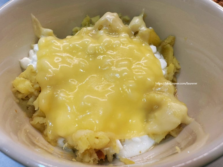 고구마와 카리지 치즈 듬뿍 올려