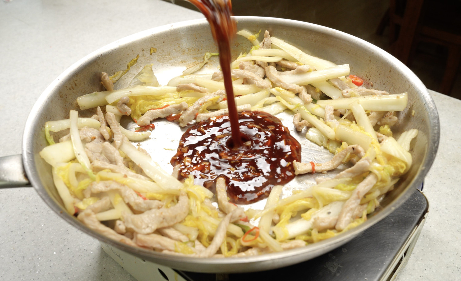 물 80ml 추가해요 한번 더 볶다가