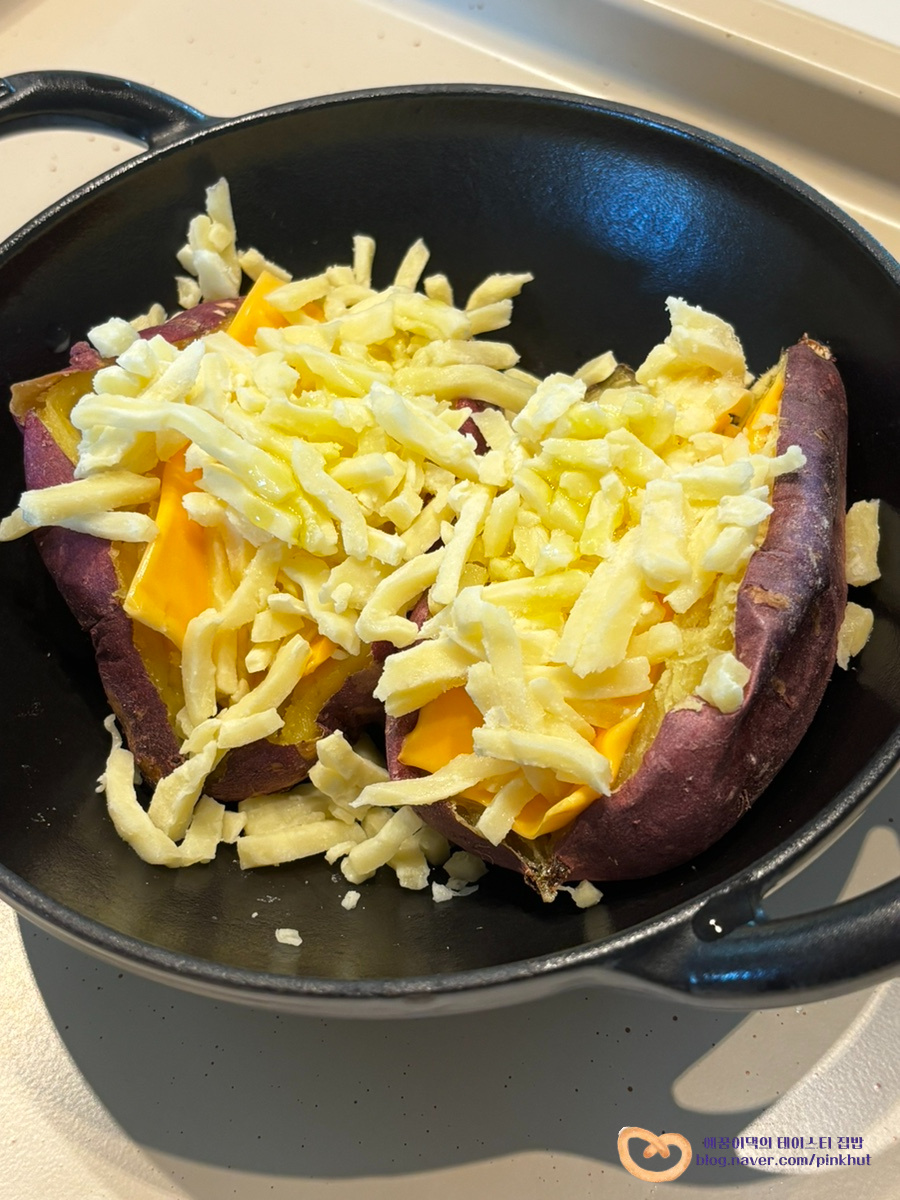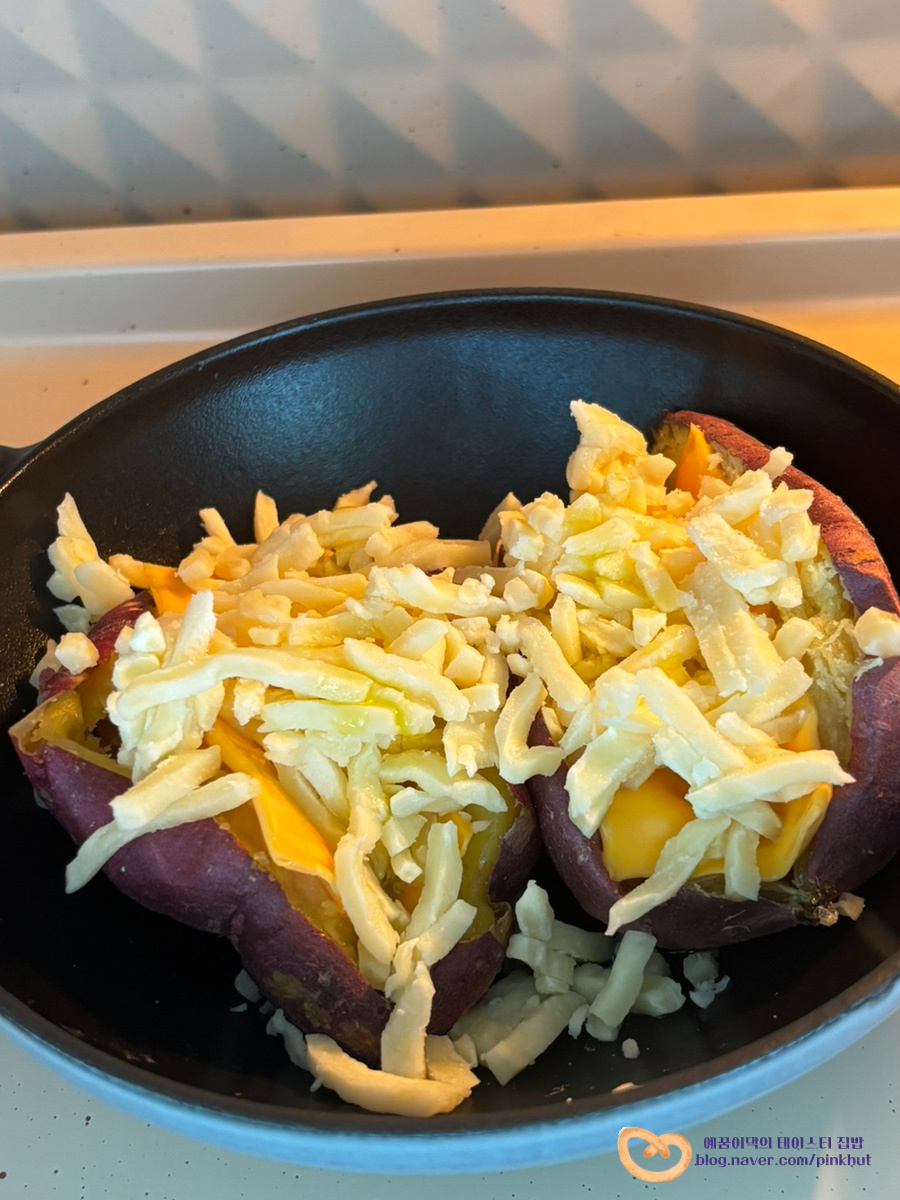 체다, 모짜렐라 치즈는 듬뿍~ 넣고 집에 있는 꿀, 버터 넣어 녹여주면 완성!