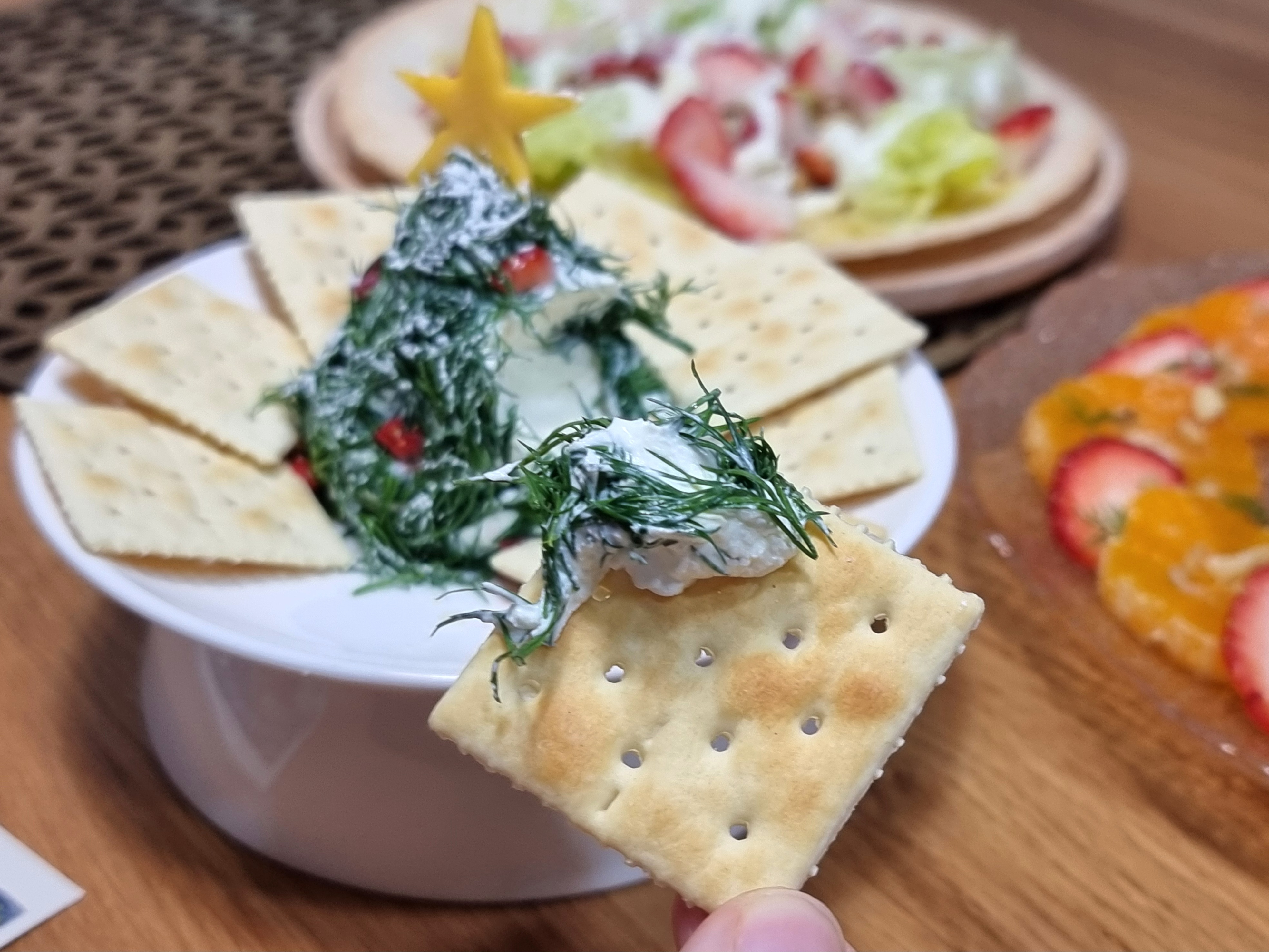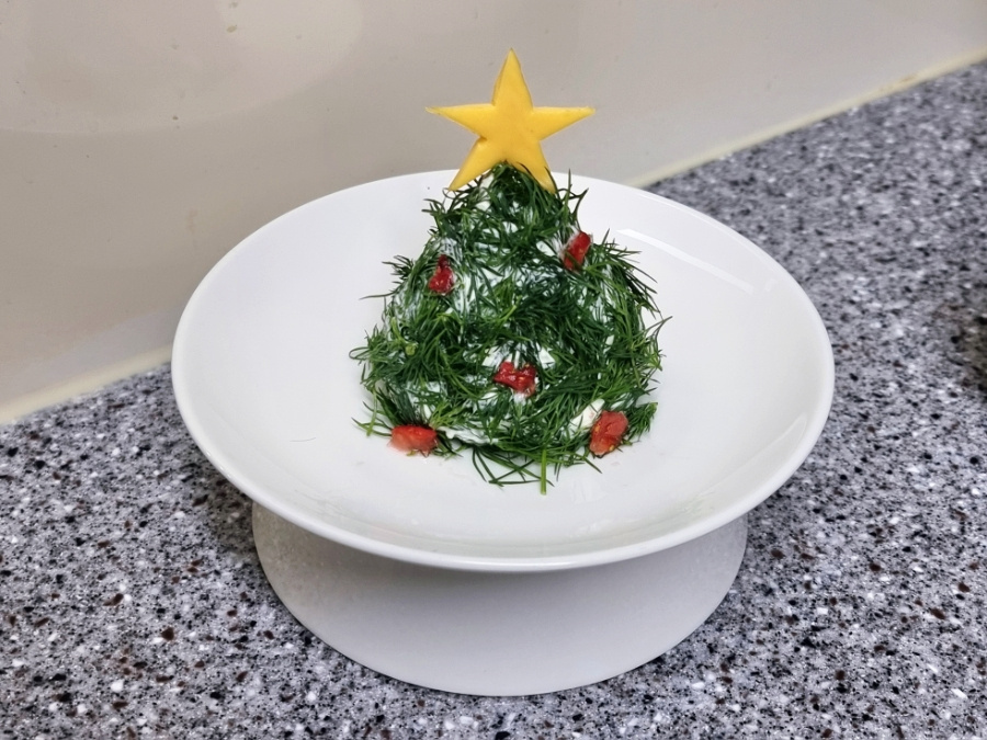 크리스마스날 와인안주로 만들기 좋은 트리 모양의 크림치즈에요. 눈으로 한번 보고 입으로 즐기고~ 트리 모양의 비주얼이 참 예쁘고, 향긋한 딜과 어우러져 맛도 좋아요.