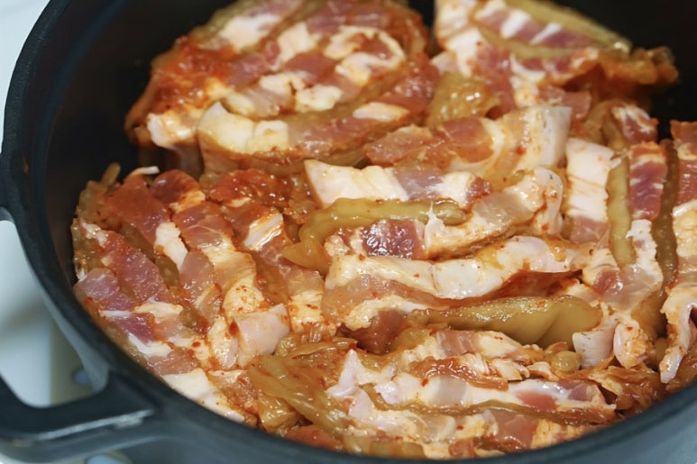 언제 먹어도 질리지 않고 든든한 돼지고기 김치찜입니다. 이번엔 조금 특별하게 김치와 돼지고기를 겹쳐 밀푀유김치찜으로 만들어 봤어요. 비쥬얼이 아주 좋기 때문에 손님 상차림 메뉴로도 손색이 없는 김치찜 레시피 천천히 소개해 드릴게요!