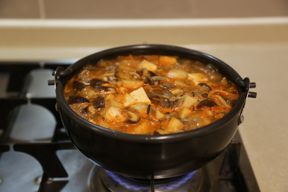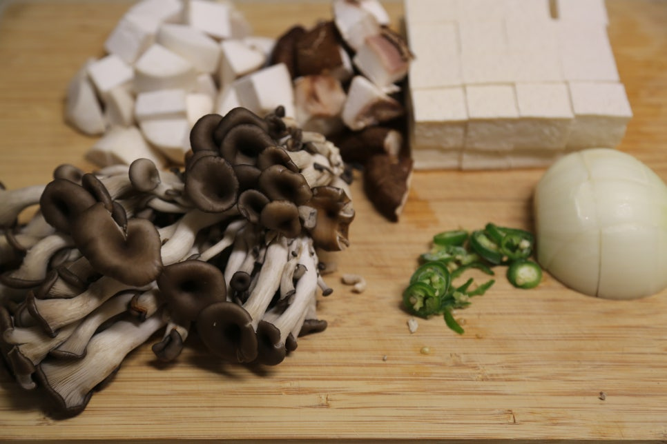 소고기와 버섯 그리고 두부만 있으면 맛있는 고깃집된장찌개를 끓일 수 있습니다