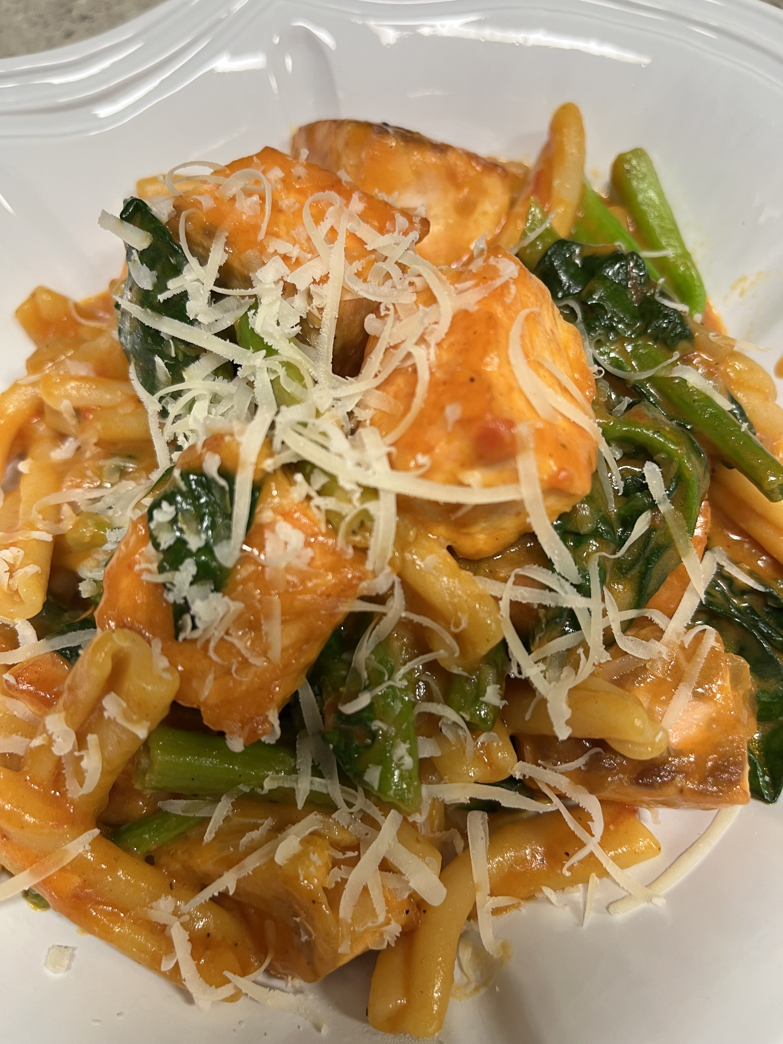 숏파스타로 만든 원팬요리 연어 시금치 파스타