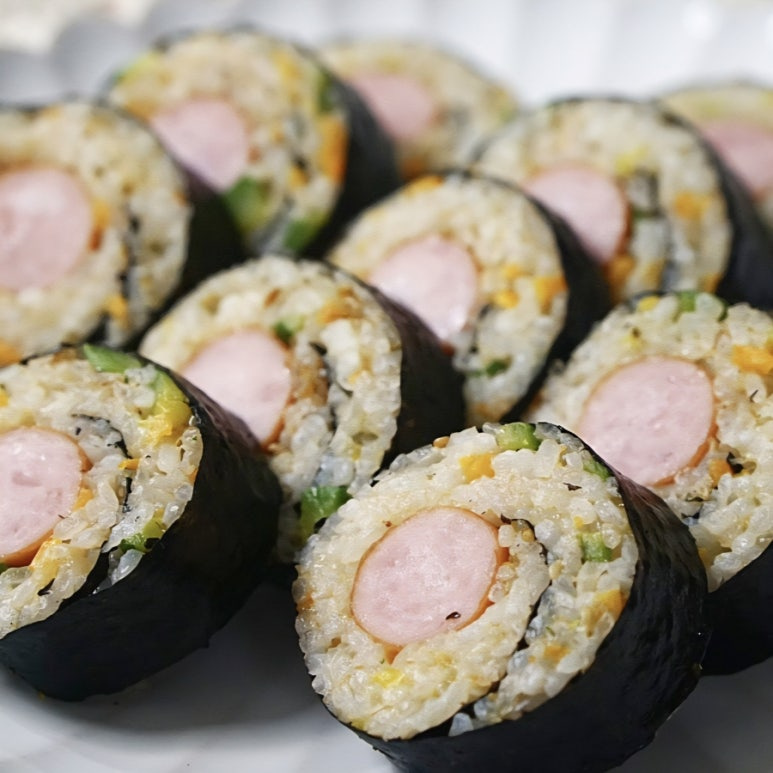 손이 많이 가는 음식보다 가벼운 한 끼를 먹고 싶은 날 만들기 좋은 소세지김밥 레시피입니다. 보통 어린이용 김밥이라고 하면 재료를 단순하게 구성하지만 채소를 잘게 다져 밥에 섞으면 자연스러운 야채김밥의 형태가 되어 영양이 풍부해져요. 아이들이 좋아하는 소세지를 중심으로 채소를 다져 넣어 영양 밸런스를 맞춘 소세지김밥 만드는법 소개해 드릴게요 '◡'