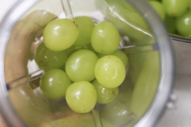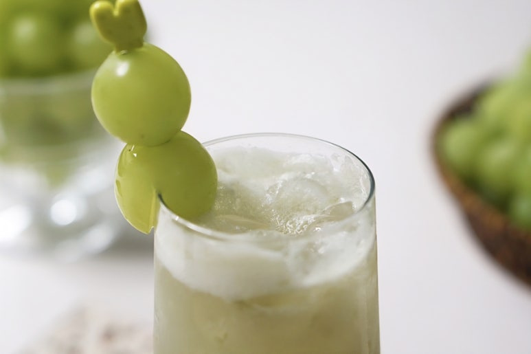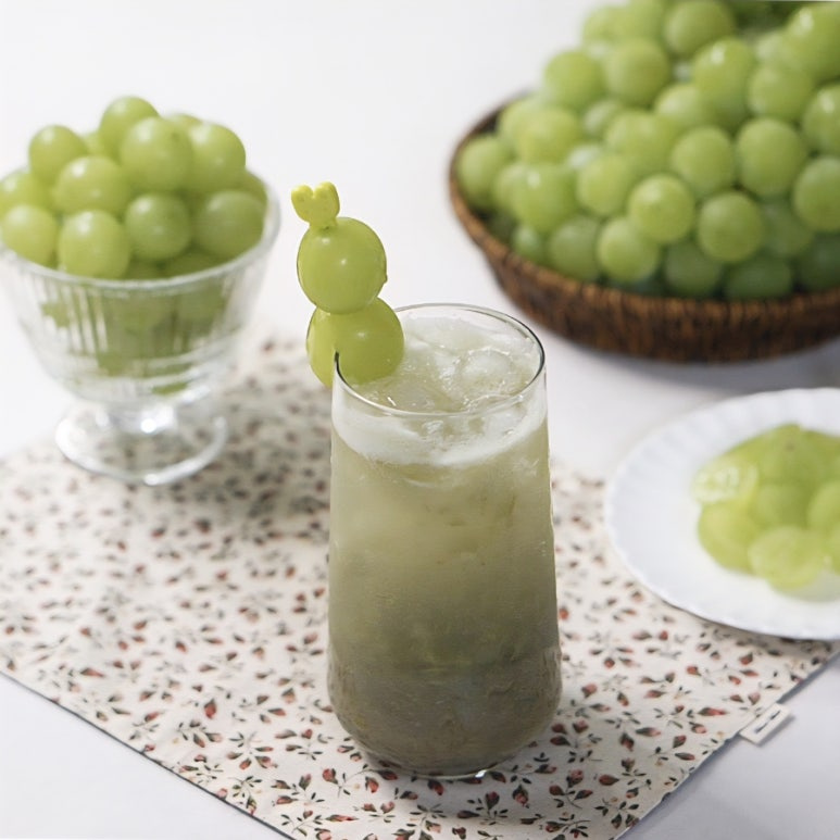 달콤하면서도 청량감이 가득한 샤인머스켓에이드. 과일의 기본 당도가 높기 때문에 알룰로스나 꿀을 추가하지 않아도 과육 그대로 충분히 달고 맛있는 에이드를 즐길 수있어요!
