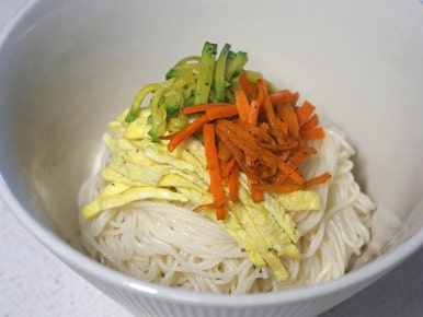양념장 없이 담백한 맛으로 드실 분은 간을 조금 더 강하게 해주시는게 좋아요. 면이 들어가면 국물이 싱거워지기 때문에 육수를 맛봤을 때 약간 짠 듯하게 간을 잡아주세요.