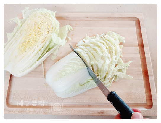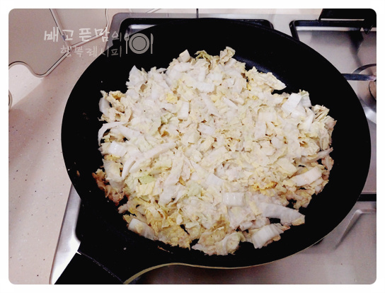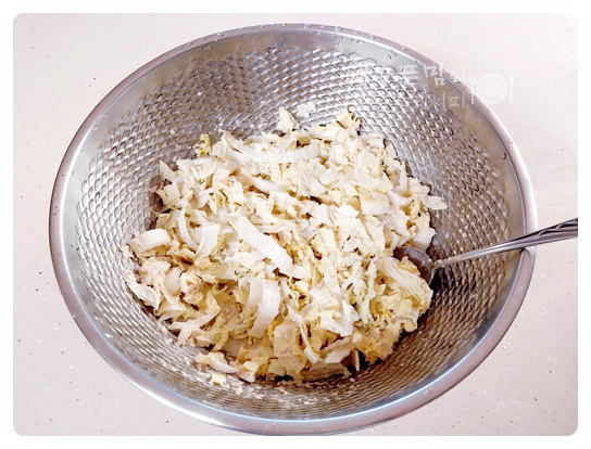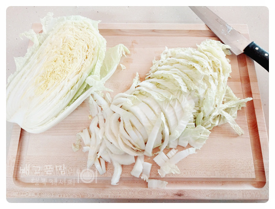 알배추 반 포기를 채 썰어 넣고
