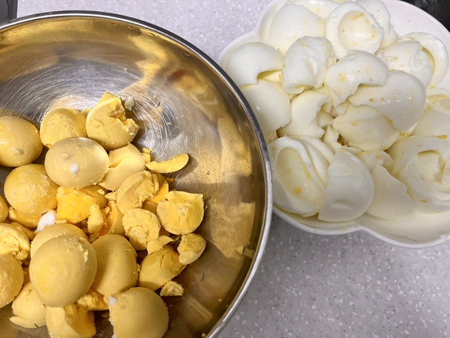 ✔️계란을 삶을 때는 소금1T 넣어 삶아주세요. 껍질이 더 잘까져요~