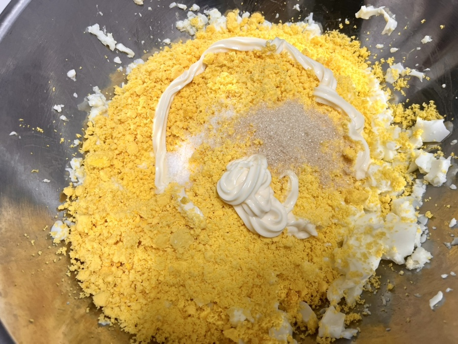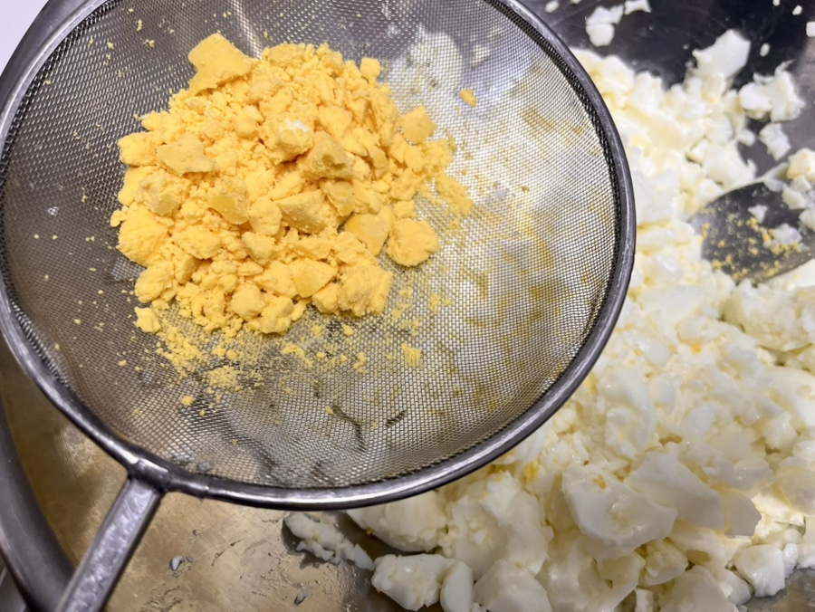 ✔️흰자도 채에 걸러 사용하면 부드러운 식감의 에그마요샌드위치를 만들 수 있어요.