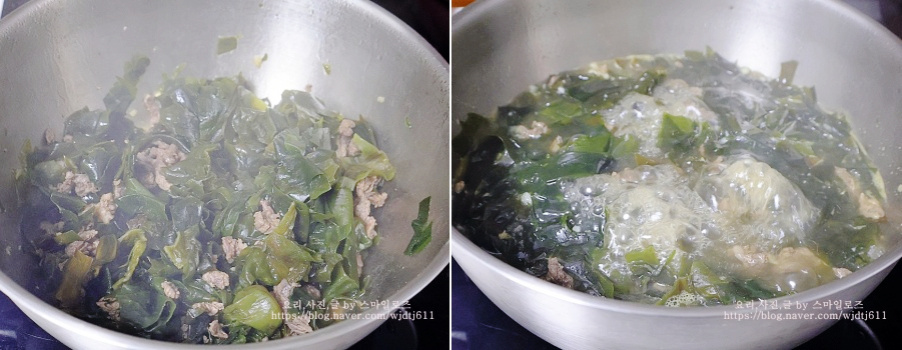 미역과 고기를 충분히 볶아야 국물도 진하게 우러나고
