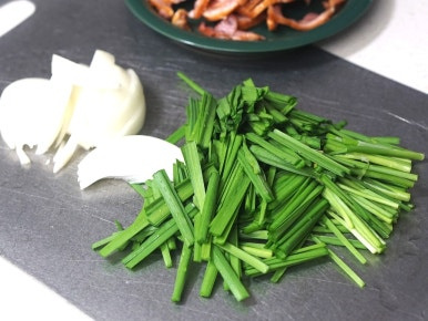 훈제오리 250g , 부추 40g , 양파 1/2개 , 다진마늘 1큰술 , 굴소스 1/2큰술 , 알룰로스 1/2큰술 , 후추 조금 , 통깨 1큰술