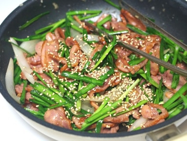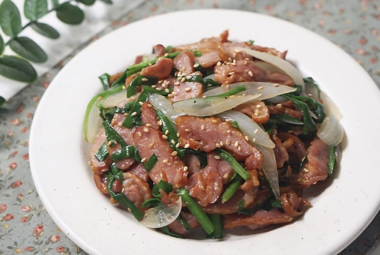 훈제오리 슬라이스 요리 오리고기 부추볶음