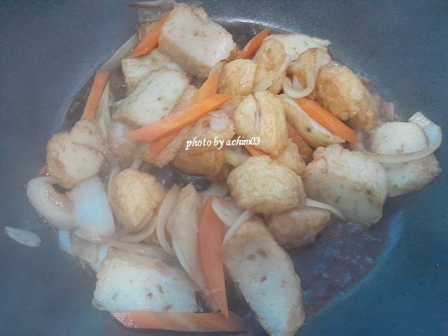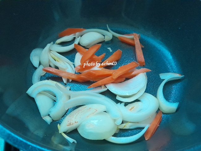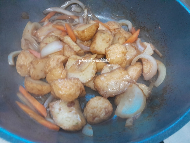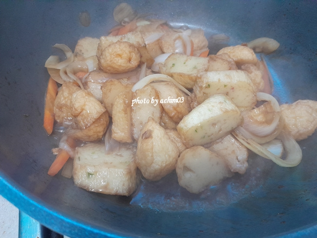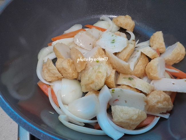 어묵 5개 , 양파 1/2개 , 당근(색내기용) 약간