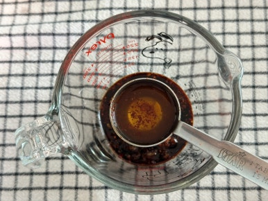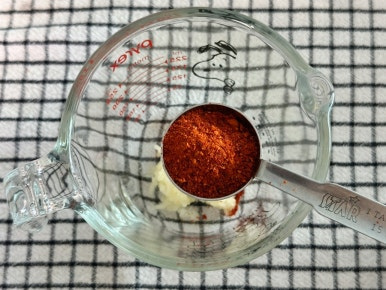 고춧가루 2T , 진간장 3T , 다진마늘 1T , 식초 1T , 꿀 1T , 연겨자 1t