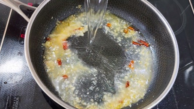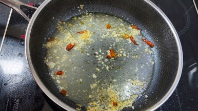올리브오일에 부드럽게 볶아진 마늘 향이 은은하게 퍼지며 입맛을 깨웁니다.