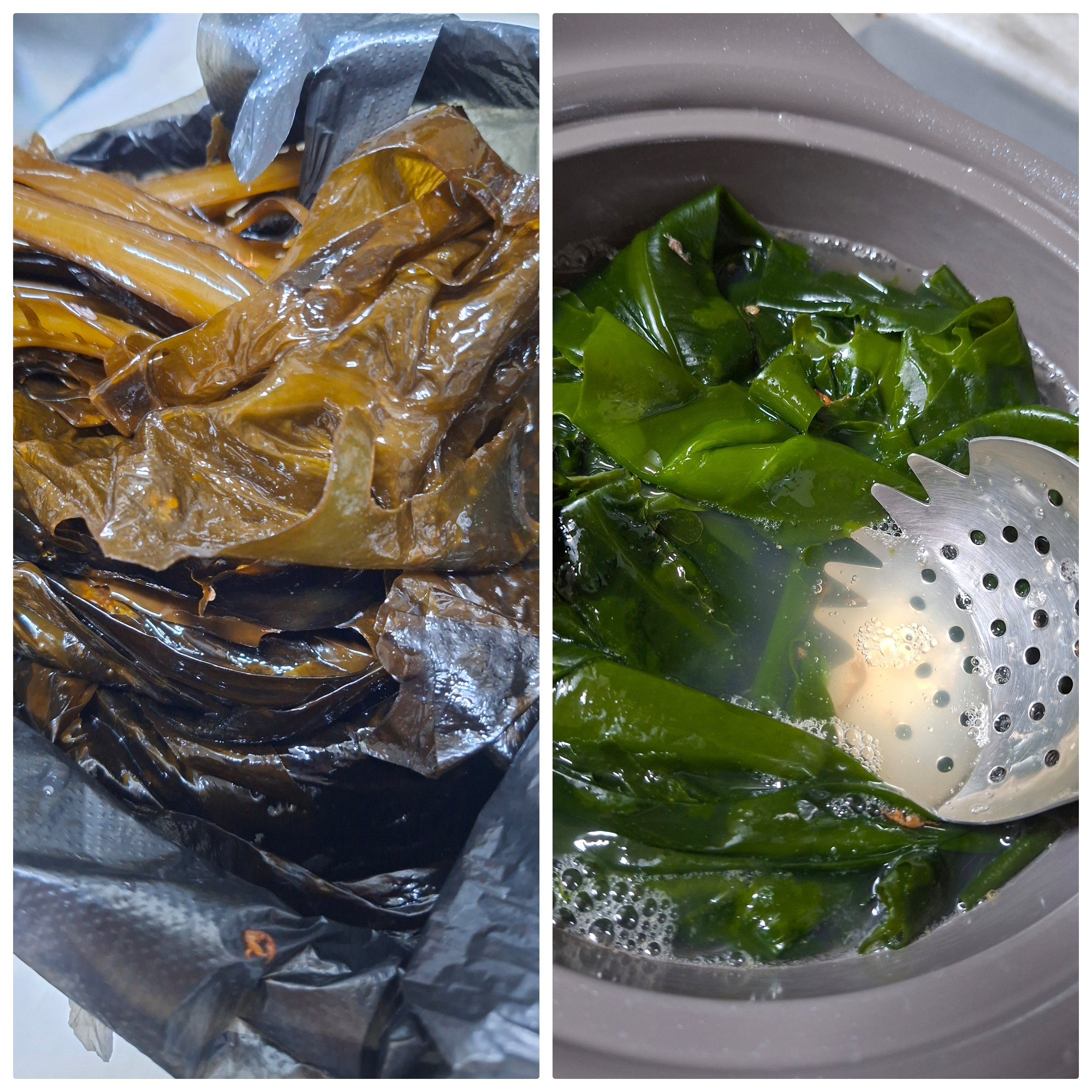 생미역이 많이 나오기시작하네요 자극적이지않게 건강한음식으로 액젓으로 살짝 간해서 무쳐봤어요 생미역물비린내를 제거해서 데치는방법을 알려드려요