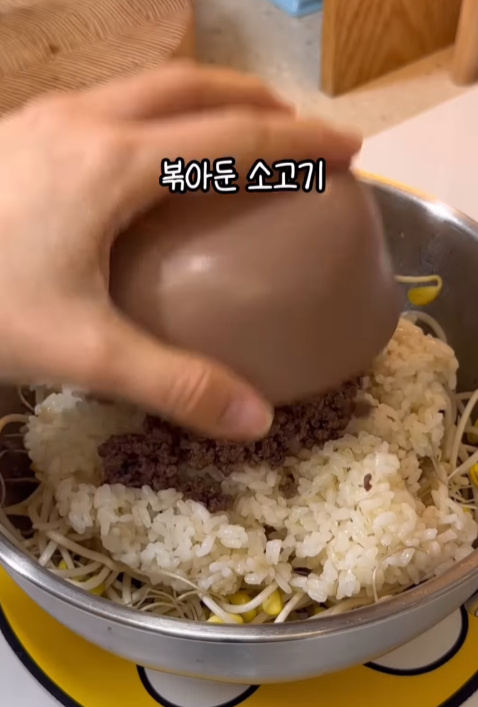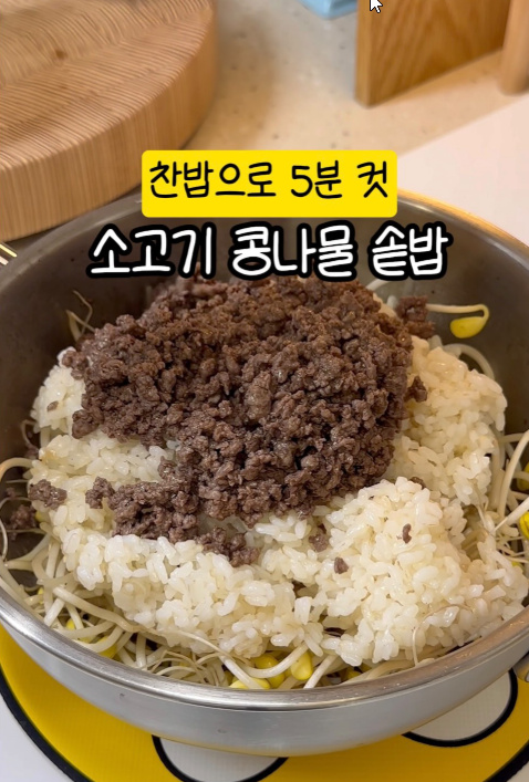 아침부터 든든하게 먹을 수 있는 간편한 콩나물 소고기밥 레시피에요.