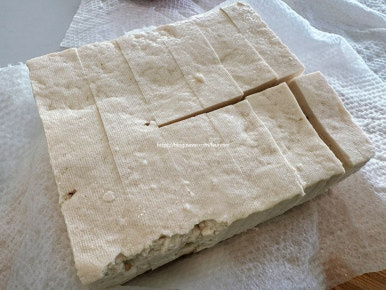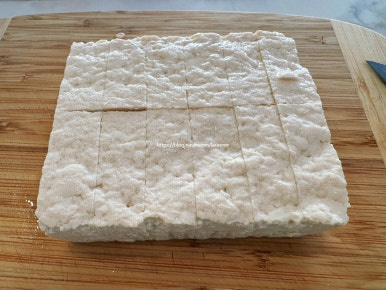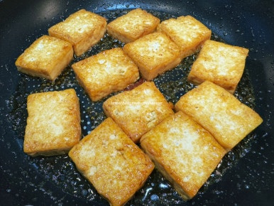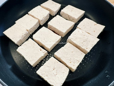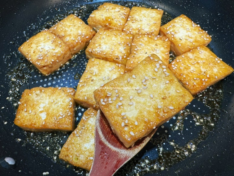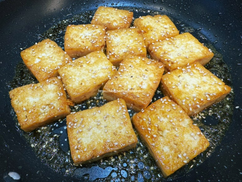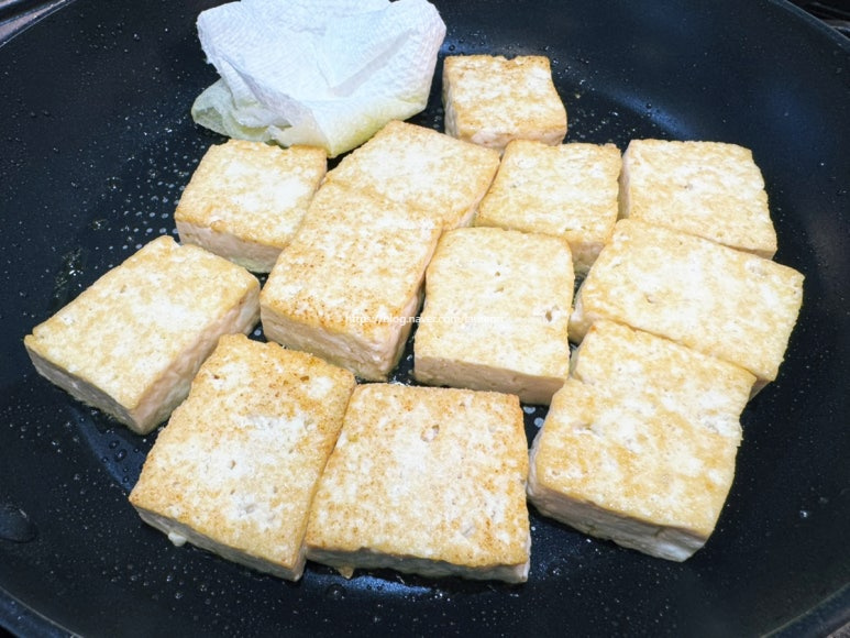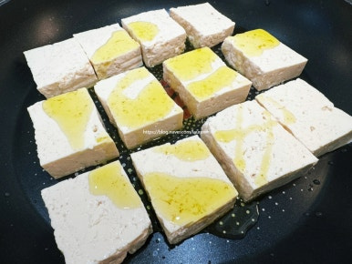 두부를 썰어서 올리브 오일에 바삭하게 구운 후