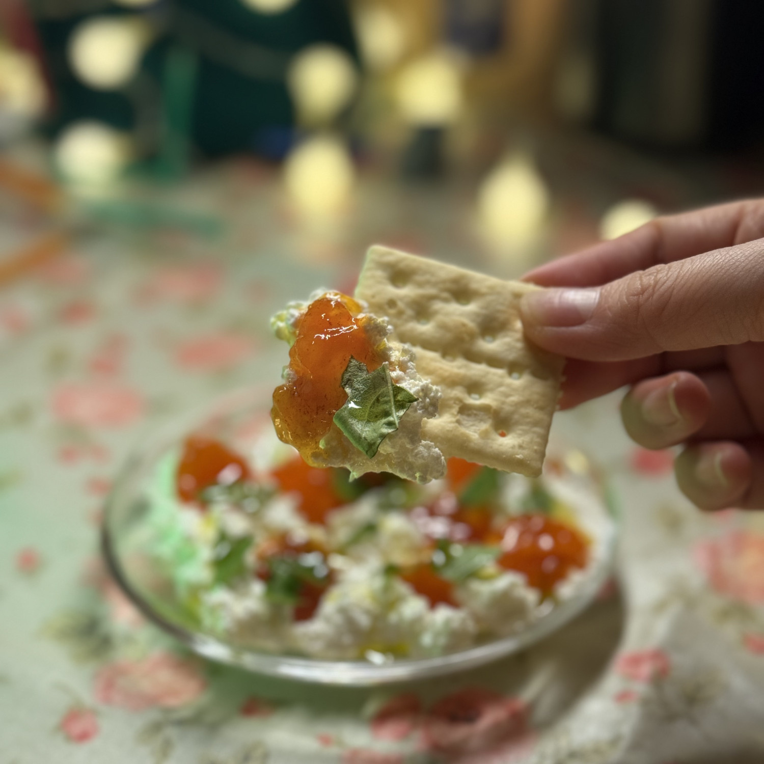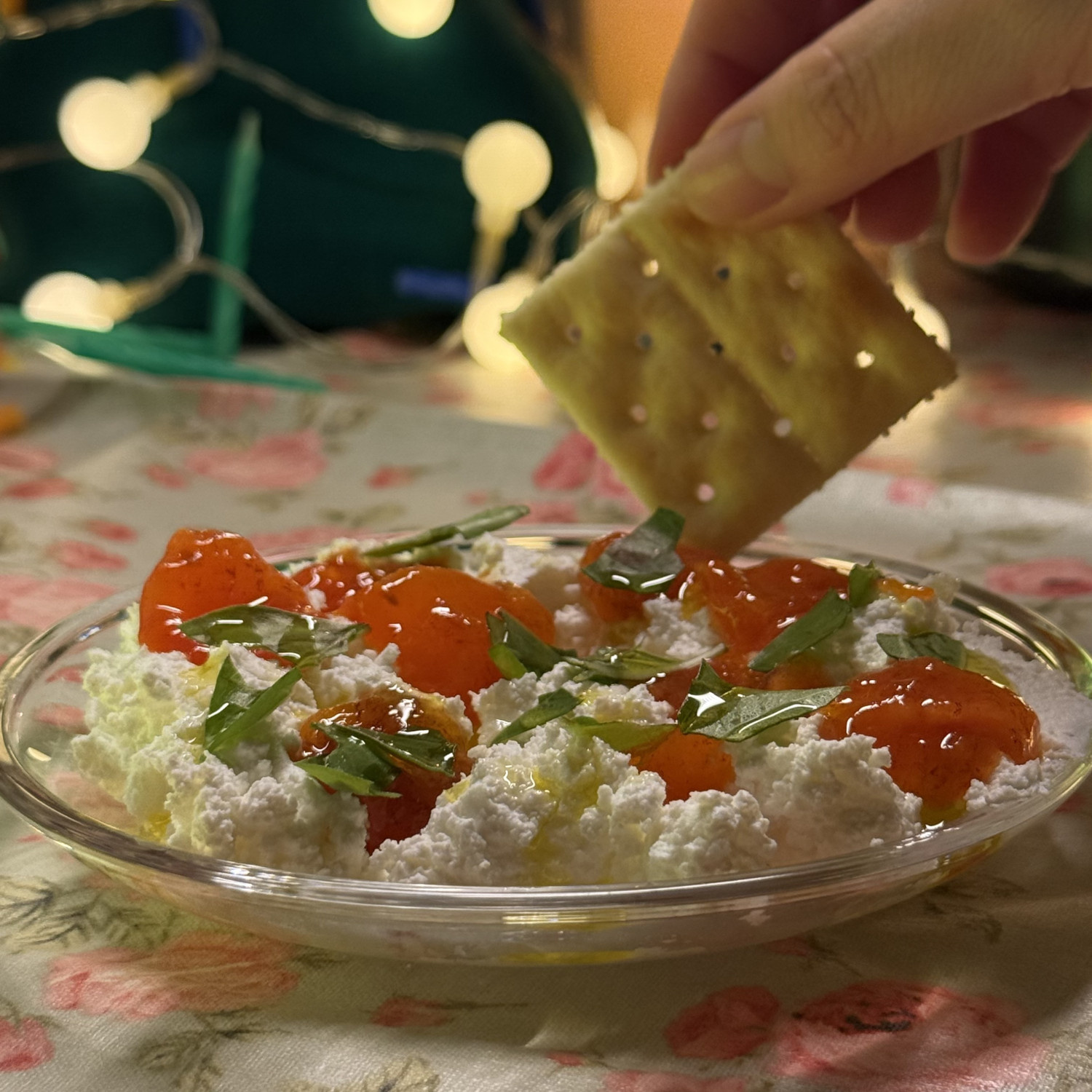 비스킷에 연시와 그릭요거트를 함께 올려 먹어보세요