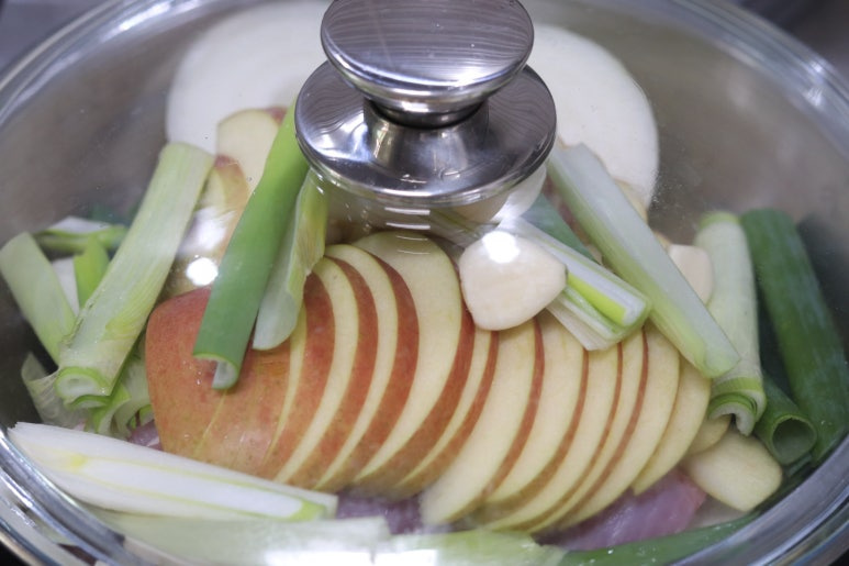 사과 무수분 수육 양념 양념 통 삼겹 수육 만드는 법