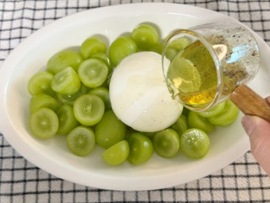 요즘 제철 과일인 샤인 머스캣! 비타민 C와 폴리페놀 및 칼륨이 풍부해서 항산화와 면역력 강화에 좋은 과일이에요. 씨가 없고 껍질째 먹을 수 있는 포도로 망고 향이 은은하게 퍼지면서 달콤한 맛이라 남녀노소 누구나 좋아하는 샤인 머스캣이죠. 그냥 먹어도 맛있고 달콤한 샤인 머스캣으로 간단하고 상큼한 과일 샐러드를 만들었어요. 올리브오일과 부라타치즈의 풍미가 더해져서 고급진 맛으로 와인 안주로 잘 어울린답니다. 샤인 머스캣 부라타치즈 샐러드 레시피를 남겨 보도록 할게요 :)