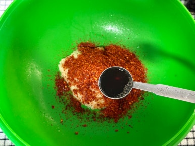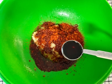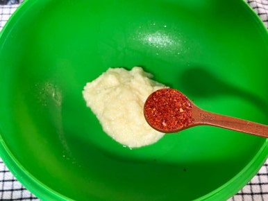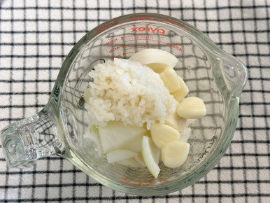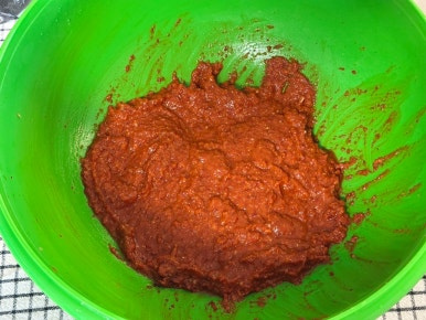 고춧가루 7T , 찬밥 1T , 물 30ml , 멸치액젓 3T , 새우젓 1.5T , 매실청 1T , 마늘 10개 , 생강가루 0.5t