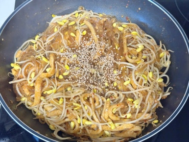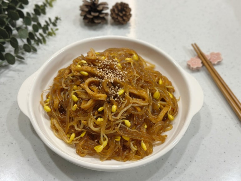 여러 가지 재료를 넣고 만들지 않아도 맛있게 먹을 수 있는 잡채! 콩나물과 어묵을 넣고 고춧가루 양념으로 매콤하게 볶아내니 입맛을 살려주는 밥반찬으로 잘 어울린답니다. 아삭한 콩나물과 쫄깃한 당면의 식감이 매콤한 양념과 어우러져서 은근 별미더라고요.명절 때 사용하고 남은 당면이 있다면 콩나물 한 봉지와 함께 휘리릭 볶은 매콤 콩나물 잡채가 딱이에요! 간단 잡채 레시피로 콩나물 매콤 잡채 만드는 법을 남겨 보도록 할게요 :)
