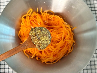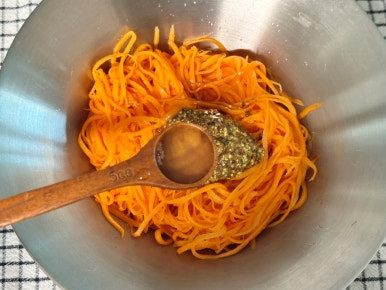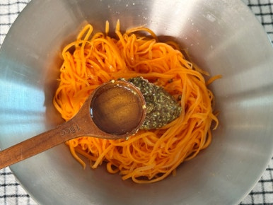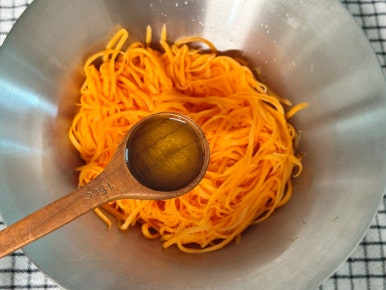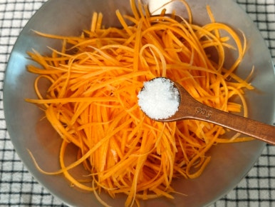 당근 2개 , 소금 1t , 올리브오일 1.5T , 홀그레인머스터드 2T , 레몬즙 1t , 꿀 1T