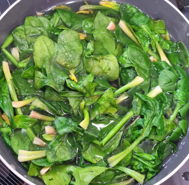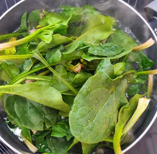 끓는물에 굵은소금 1큰술 넣고 깨끗이 싯은 포항초 시금치를 넣어주세요