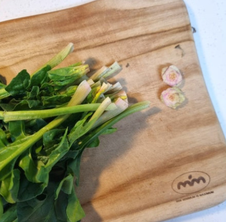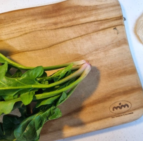 시장에서 포항초 시금치 한단을 사와서 뿌리쪽만 살짝 잘라주었어요 보통 시금치 한단은 300~400g정도예요