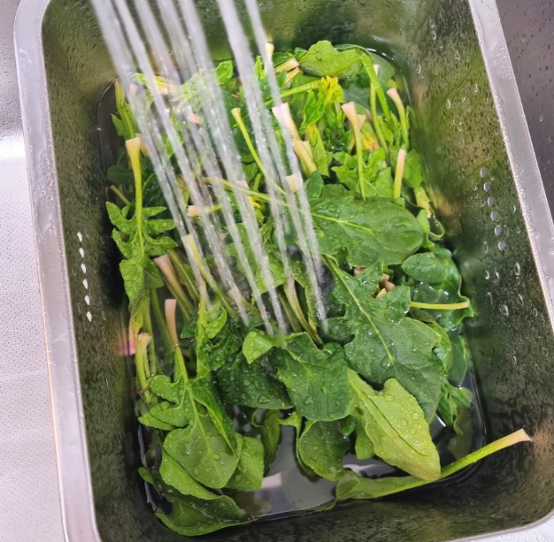 데쳐낸 나물은 잔열에 익지 않도록 찬물에 바로 헹궈주세요