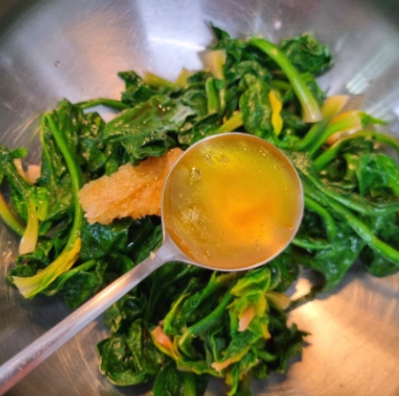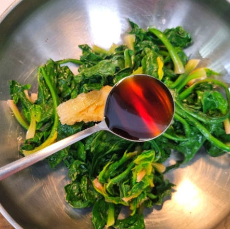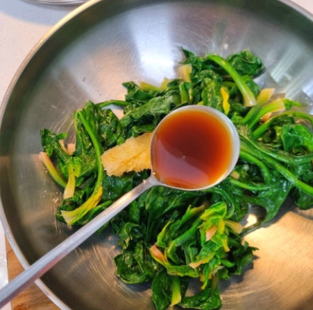 나물에 물기를 짜낼때는 손바닥으로만 사용해서 꾹 눌러 물기를 제거해 주세요