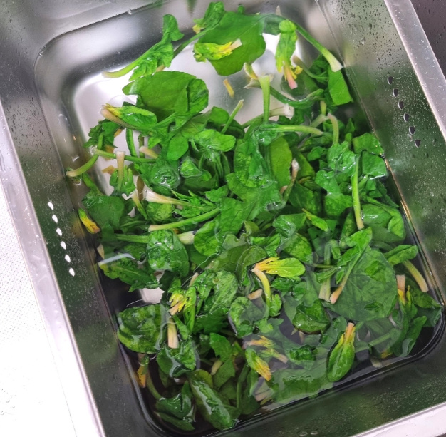 줄기쪽에 흙이 많아서 물에 2~3번 여러번 헹궈주세요