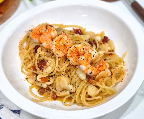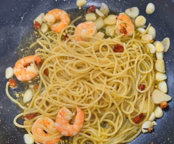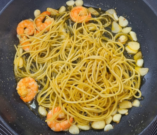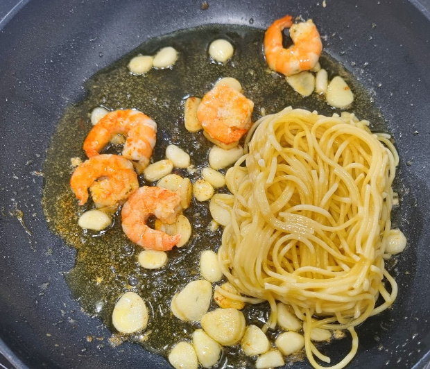 혼자 점심을 챙겨먹을 때나 주말에는 주로 알리오올리오 스파게티를 만들어 먹는편이에요 미리 냉동 파스타면을 만들어 놓으면 라면처럼 간단하게 새우 알리오 올리오 파스타 만들 수 있어요 알리오올리오 스파게티 만드는법이랑 동일한데 새우를 듬뿍 넣어 만들어 봤어요 올리브오일, 마늘, 새우 듬뿍 넣고 냉동 파스타면 해동한뒤 면을 넣어 볶아주면 새우 알리오 올리오 파스타를 10분이면 만들 수 있어요 알리오올리오 스파게티 새우 알리오 올리오 파스타 만들러 가보실까요~?