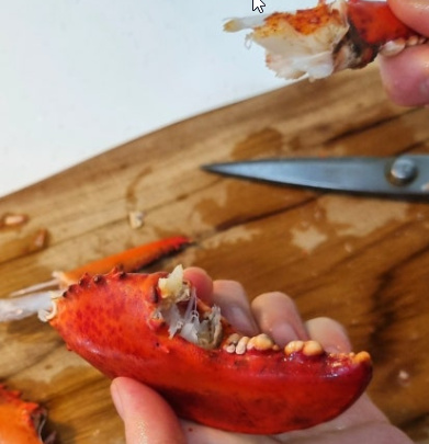 집게발에는 가위를 살짝 넣고 잘라가며 살을 빼주세요