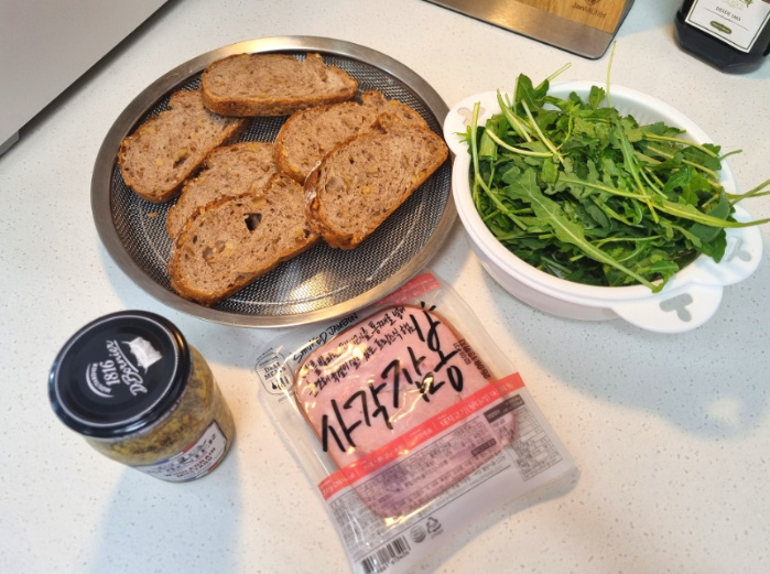 주말에 먹기 좋은 간단한 점심으로 잠봉루꼴라샌드위치 만들어 먹었어요 루꼴라샌드위치 만들기는 잠봉, 루꼴라, 깜빠뉴 3가지만 있으면 휘리릭 만들 수 있어서 간단한 끼니 챙겨먹을 때 딱 좋아요 잠봉루꼴라샌드위치는 깜빠뉴에 홀그레인머스타드 듬뿍 바른후에 루꼴라, 잠봉 듬뿍 올려주면 완성이에요 입맛에 따라 후추나 레드페퍼 뿌려주면 비주얼도 맛도 좋은 깜빠뉴 샌드위치에요 향긋한 맛과 향이 좋은 루꼴라와 짭짤한 잠봉, 톡쏘는 홀그레인까지 잘 어우러져요 깜빠뉴 샌드위치 잠봉루꼴라샌드위치 루꼴라 샌드위치만들기 시작할게요~!