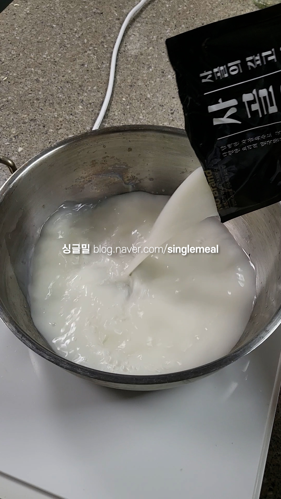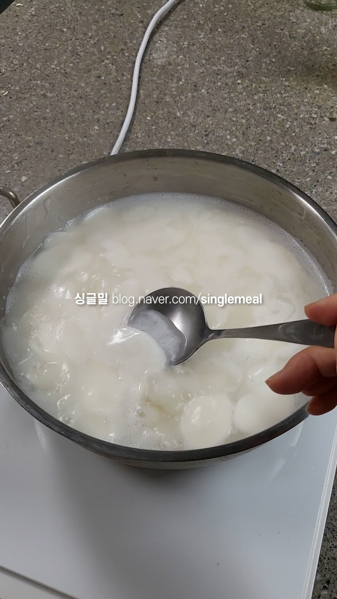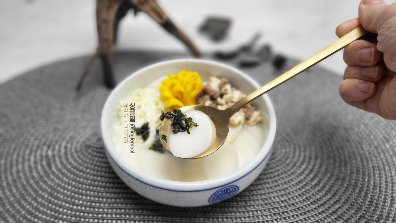 떡국 500 g , 사골육수 900 ml , 계란 2~3 개 , 김가루