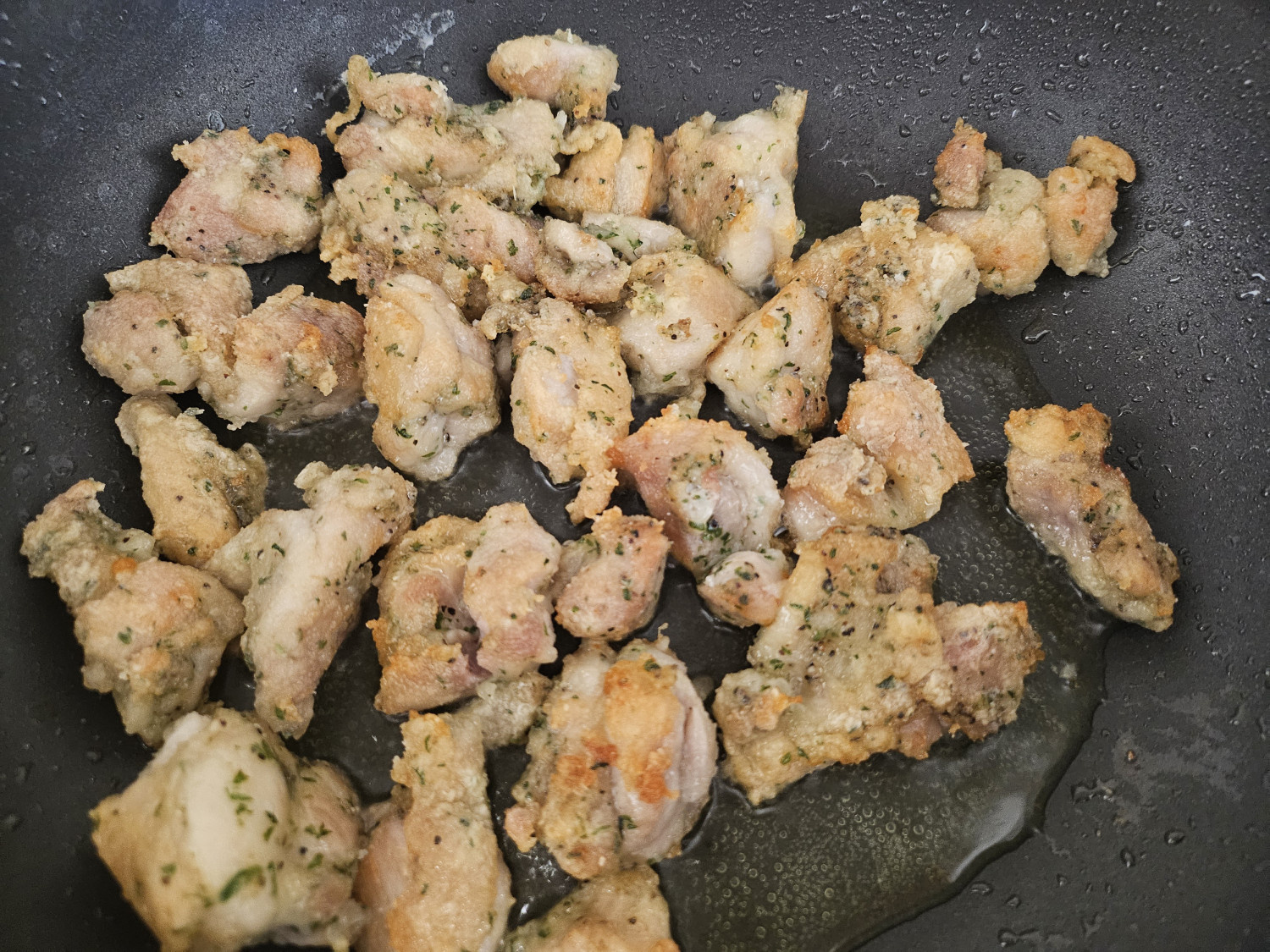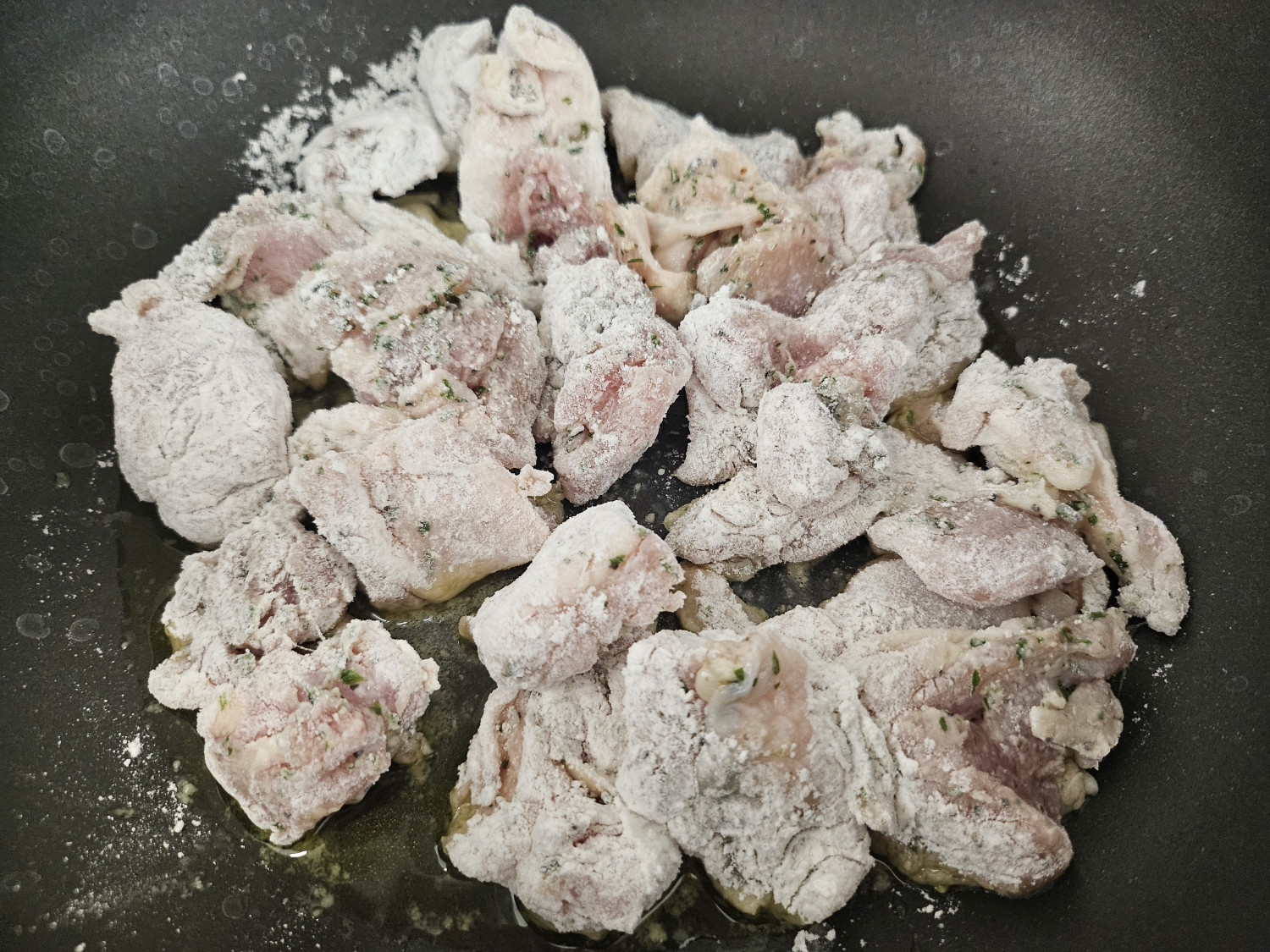 앞뒤로 잘 구워줍니다. 간장 소스 들어가면 금방 끓어 졸아 들기 때문에 닭을 먼저 충분히 익혀줍니다.