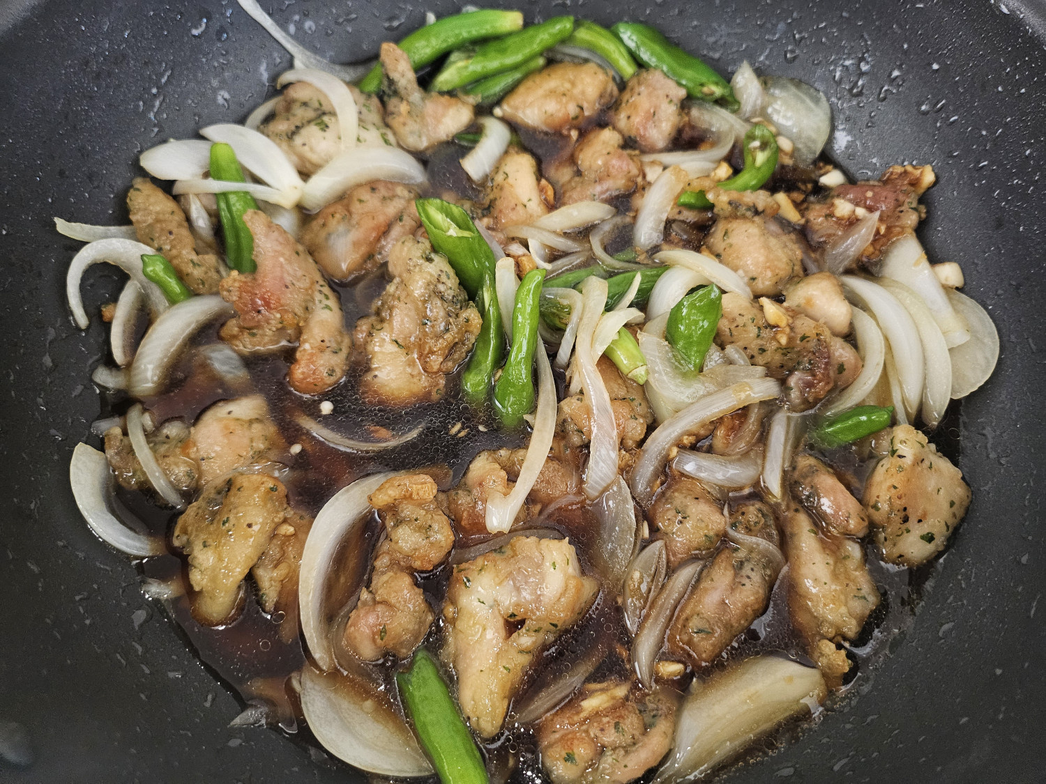 닭과 양파가 익었으면 좋아하는 꽈리고추 식감에 따라 순서는 둘 중 하나 선택하여 넣으시면 됩니다.
