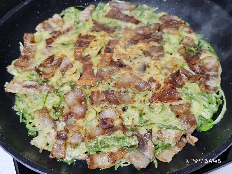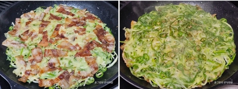색다른 풍자 파전 만들기 삼겹파채전 레시피 대파전 삼겹살요리 만드는법