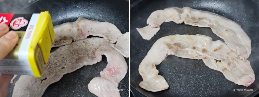물이 생기니 한두 번만 뒤집어요.