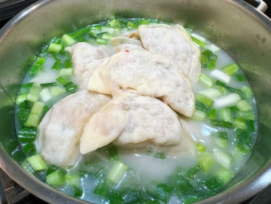 새해맞이로 미리 빚어 둔 손만두를 넣어