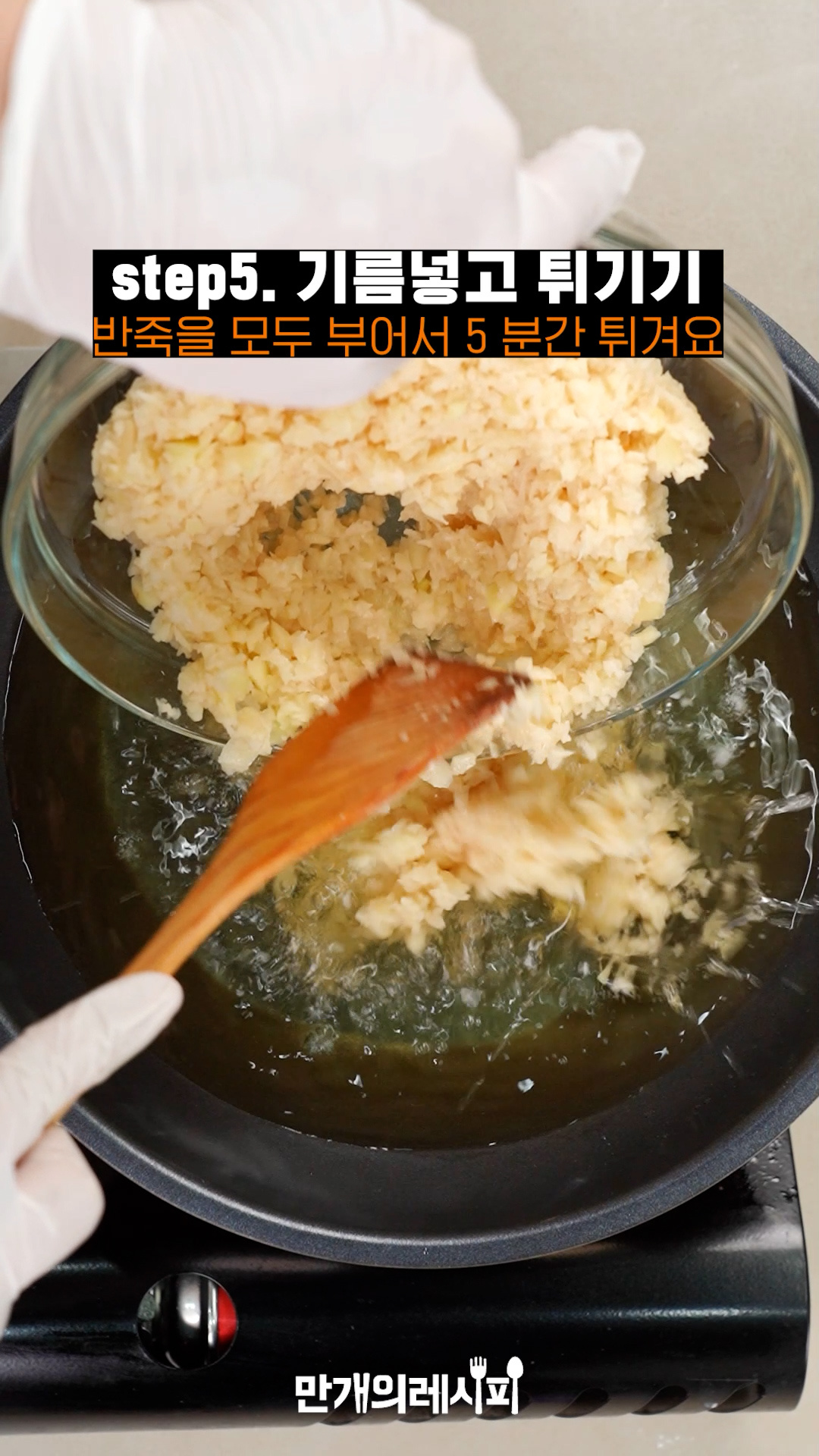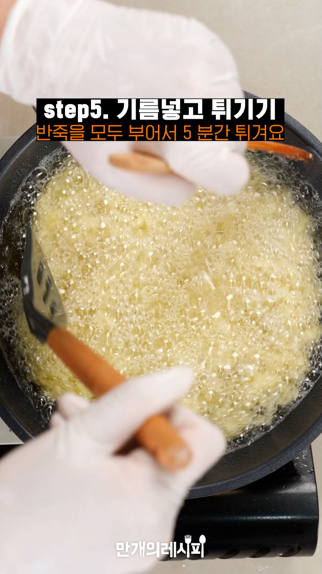 - 반죽조각을 넣어 3초 후 떠오를 정도로 예열 후에 넣어주세요.