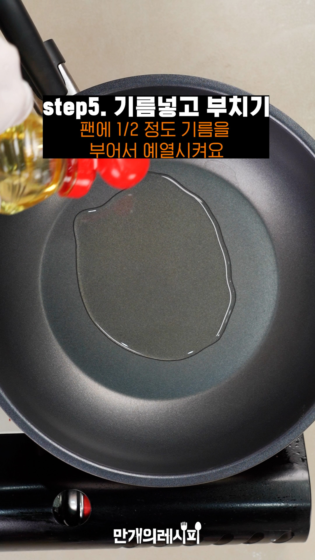 - 기름은 프라이팬 바닥에 찰랑거릴 정도로 넣어주면 적당해요.
