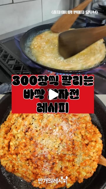 해쉬브라운처럼 쫀득한 바삭 감자전. 하루에 300장씩 팔린다는 인기 레시피를 직접 만들어봤어요! 겉은 바삭바삭, 속은 촉촉해서 계속 손이 가요. 기름에 노릇하게 튀겨 케요네즈 소스에 찍어 먹으면 최고! 레시피 출처